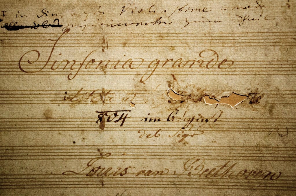 Beethoven is gedesillusioneerd. Hij krast Napoleons naam met zoveel kracht door dat het papier openscheurt. Het meesterwerk krijgt een nieuwe titel: ‘Sinfonia Eroica, gecomponeerd om de herinnering aan een groot Man te vieren.’ Toch blijft Beethoven naderhand het werk associëren met Napoleon. Mogelijk om steun te winnen van de Franse autoriteiten, vanwege Beethovens verhuisplannen van Wenen naar Parijs.