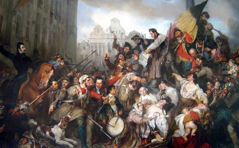 Misschien hadden de Hollandse autoriteiten met terugwerkende kracht wel een vermoeden kunnen hebben van wat ze te wachten stond. In de stad hingen in aanloop naar 25 augustus affiches met het feestprogramma ter ere van koning Willem I: “Maandag vuurwerk, dinsdag feestverlichting, woensdag REVOLUTIE.”