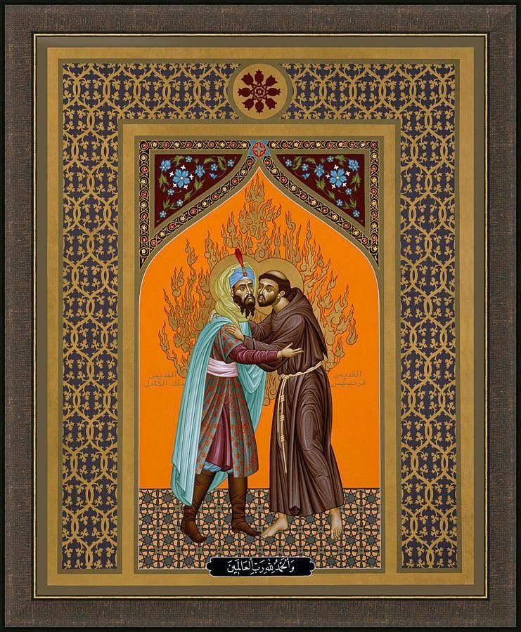 Franciscus laat weten dat hij komt om met de sultan te spreken, en wordt daarop bij hem gebracht. Wat er precies met de sultan is besproken is niet bekend. Legende en geschiedschrijving zijn hier moeilijk van elkaar te onderscheiden. Zo zijn er verhalen dat Franciscus enkele dagen bij de sultan verblijft, en daar lange gesprekken met hem voert over geloof en God. Franciscus zou geprobeerd hebben de sultan op een respectvolle manier te overtuigen van de waarheid van het christelijk geloof. De sultan wijst de ideeën van Franciscus af, maar in hun ontmoeting delen de twee mannen in alle vrijheid hun gedachten over geloof, gebed en spiritualiteit, en tonen wederzijds respect ondanks hun diepgaande verschillen. Na enkele dagen keert Franciscus terug naar het kruisvaarderskamp, vervuld van de nieuwe ideeën die hij heeft opgedaan.