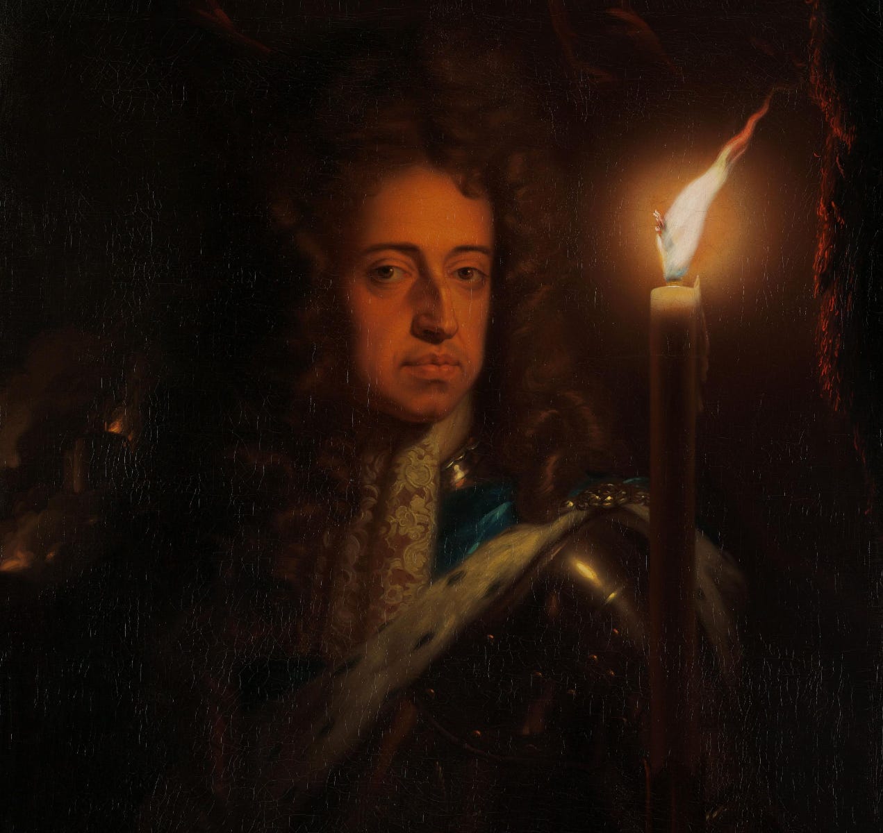 Een man van in de veertig kijkt ons enigszins emotieloos, het lijkt haast zelfingenomen, aan. Alleen een kaars verlicht zijn gezicht. Op dit schilderij zie je een geslaagde man, een man op het toppunt van zijn macht. Willem III (1650–1702) is op dit moment niet alleen prins van Oranje, maar ook stadhouder van de Republiek der Zeven Verenigde Nederlanden en koning van Engeland, Schotland en Ierland.