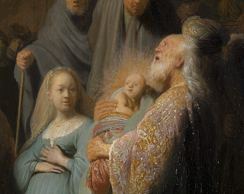 “Nu laat u, Heer, uw dienaar in vrede heengaan, zoals u hebt beloofd. Want met eigen ogen heb ik de redding gezien die u bewerkt hebt ten overstaan van alle volken: een licht dat geopenbaard wordt aan de heidenen en dat tot eer strekt van Israël, uw volk.” Zo looft Simeon God als hij Jezus in zijn armen neemt in de tempel in Jeruzalem. Simeon was een “rechtvaardig en vroom man” en “de heilige Geest rustte op hem”, zo staat in het Bijbelboek Lucas. Aan Simeon was geopenbaard dat hij voordat hij zou sterven de Messias zou zien. Hij was naar de tempel gekomen, door “de geest gedreven”. Op het moment dat Jozef en Maria met Jezus de tempel binnenkomen, weet Simeon genoeg: dit is de verlosser op wie hij zo lang heeft gewacht. En ook weet hij dat hij nu echt afscheid kan nemen van het leven.